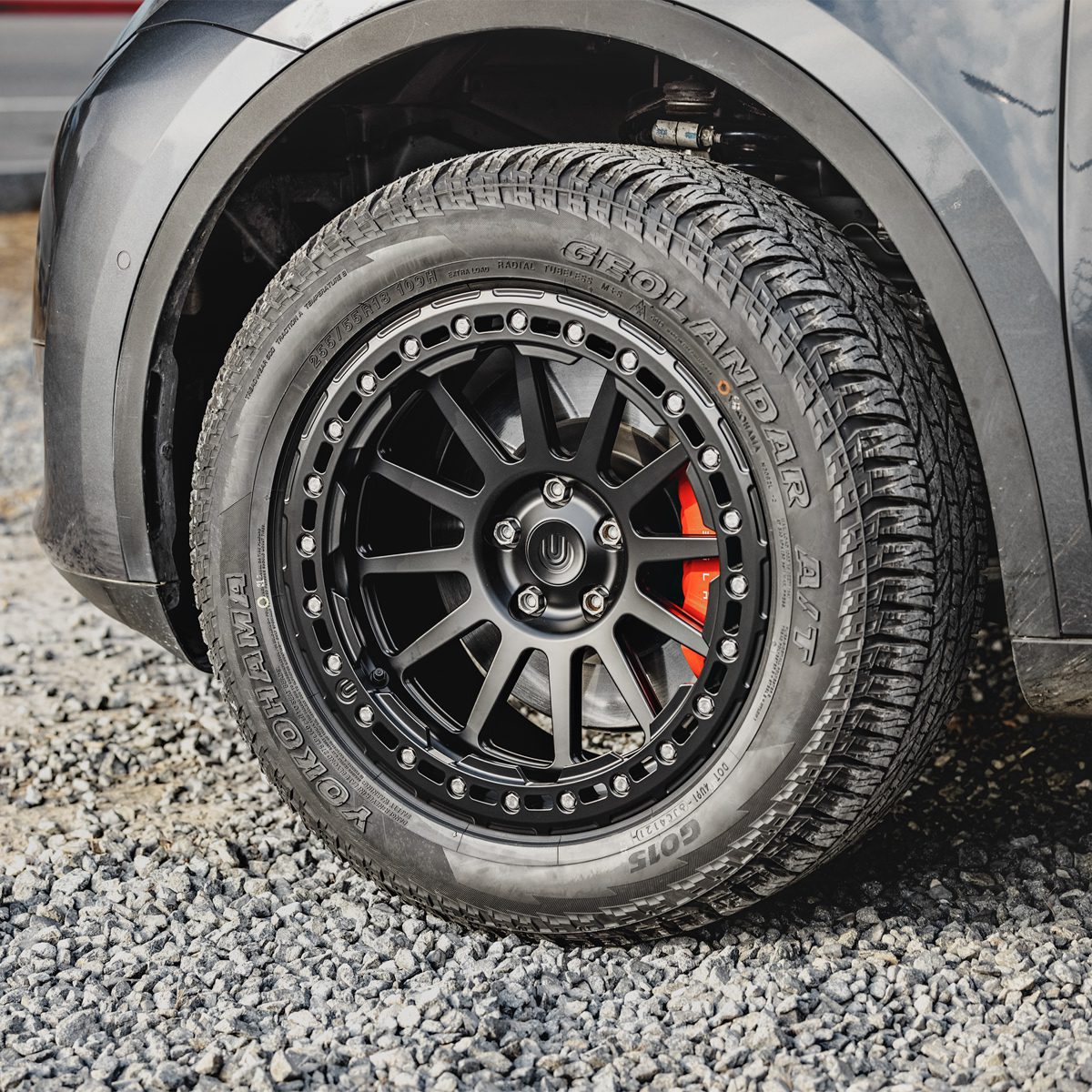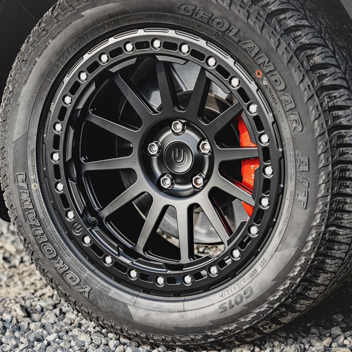 Forged for Strength: Like Unplugged Performance’s standard UP-03 wheel, the UP-03 Beadlock wheels are crafted from the same high-strength forged aluminum for maximum lightweight durability, maintain the same I-beam spoke design for added strength, and the same barrel knurling to reduce tire slip, ultimately, ensuring they can withstand the most challenging off-road adventures while maintaining on-road comfort and range.