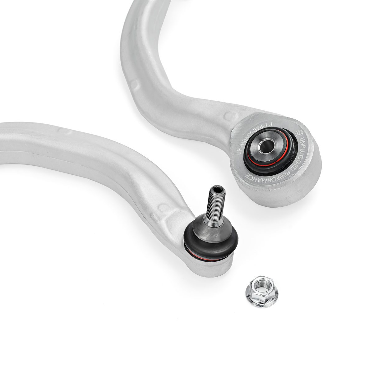 Elevate your Tesla Model Y performance and precision with Unplugged Performance Front Lower Lateral Fore and Compliance Aft Control Arms with Spherical Bushings. These meticulously engineered components are essential for anyone with worn bushings or for those looking for more precision out of their driving experience. These front lower arms feature aircraft-grade spherical bushings (sealed ball joints) and high-quality rubber bushings pressed into OEM-quality aluminum arms to enhance precision where it matters most while minimizing vibrations and noise. These arms and bushings were developed for everyday street use and were proven to withstand the intense conditions of extreme track use and even Pikes Peak Hill Climb in our race car, Dark Helmet.