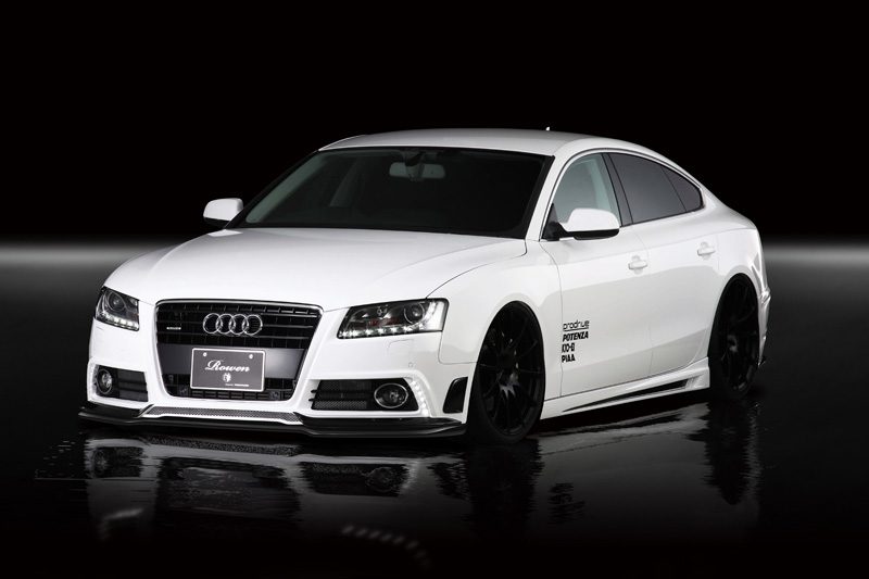 Premium kit II for the Audi A5 includes the front bumper with LED, side step, and rear bumper. The front bumper and rear bumper are compsosed of FRP + carbon, but the side step is FRP only. Designed by TommyKaira-Rowen.