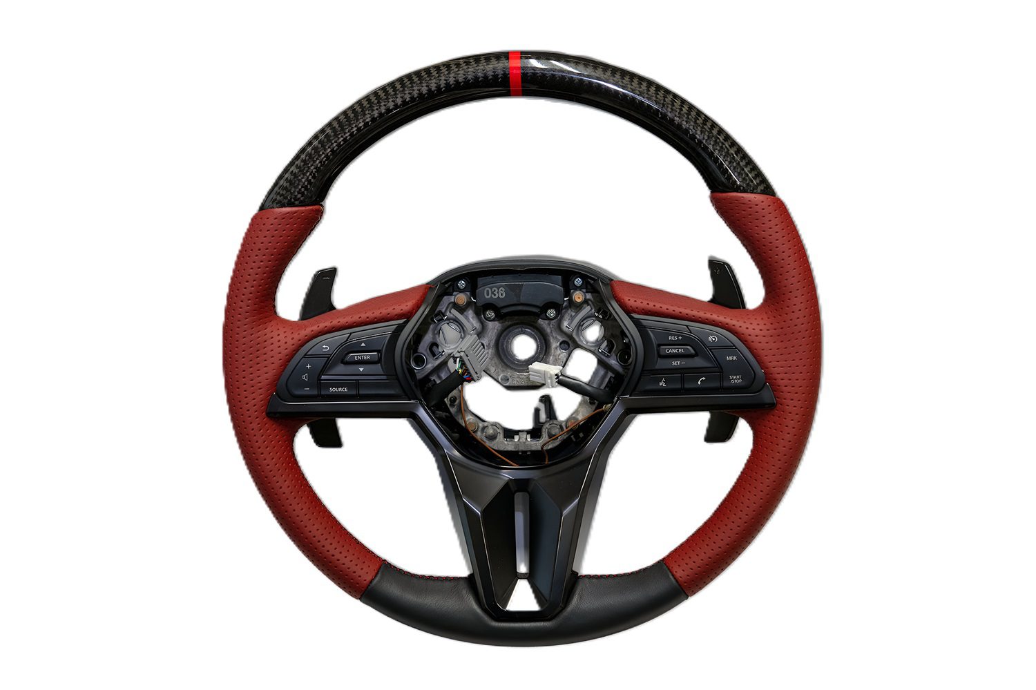 • Red leather and carbon fiber