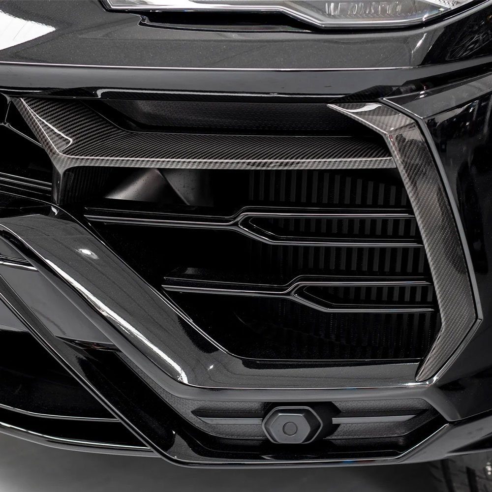Urban Automotive offers front carbon fiber eyebrows designed to cover the OEM plastic, adding more aggression to the front bumper of the Lamborghini Urus.