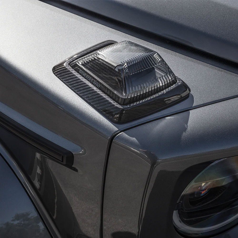 Urban Automotive introduces a premium carbon fiber indicator surround set (U400-2005) for the 2019+ G63 G-Wagon. This set is meticulously designed to enhance the vehicle’s exterior. It offers a sleek and modern upgrade for G-Wagon enthusiasts.