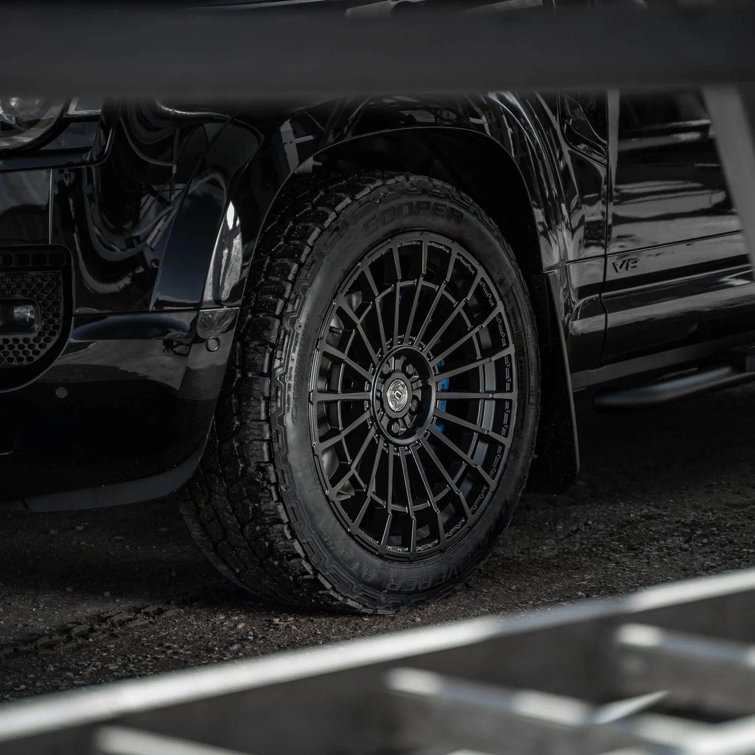 The Urban Automotive WX-3 Competition Wheel is a robust, 22-inch upgrade for the Land Rover Defender L663, tailored with a sophisticated, motorsport-inspired aesthetic. Featuring a bold multi-spoke design with a competition center ring, the wheel is finished in Satin Black and engineered to handle high load ratings while lending the Defender a visually dynamic and aggressive stance.