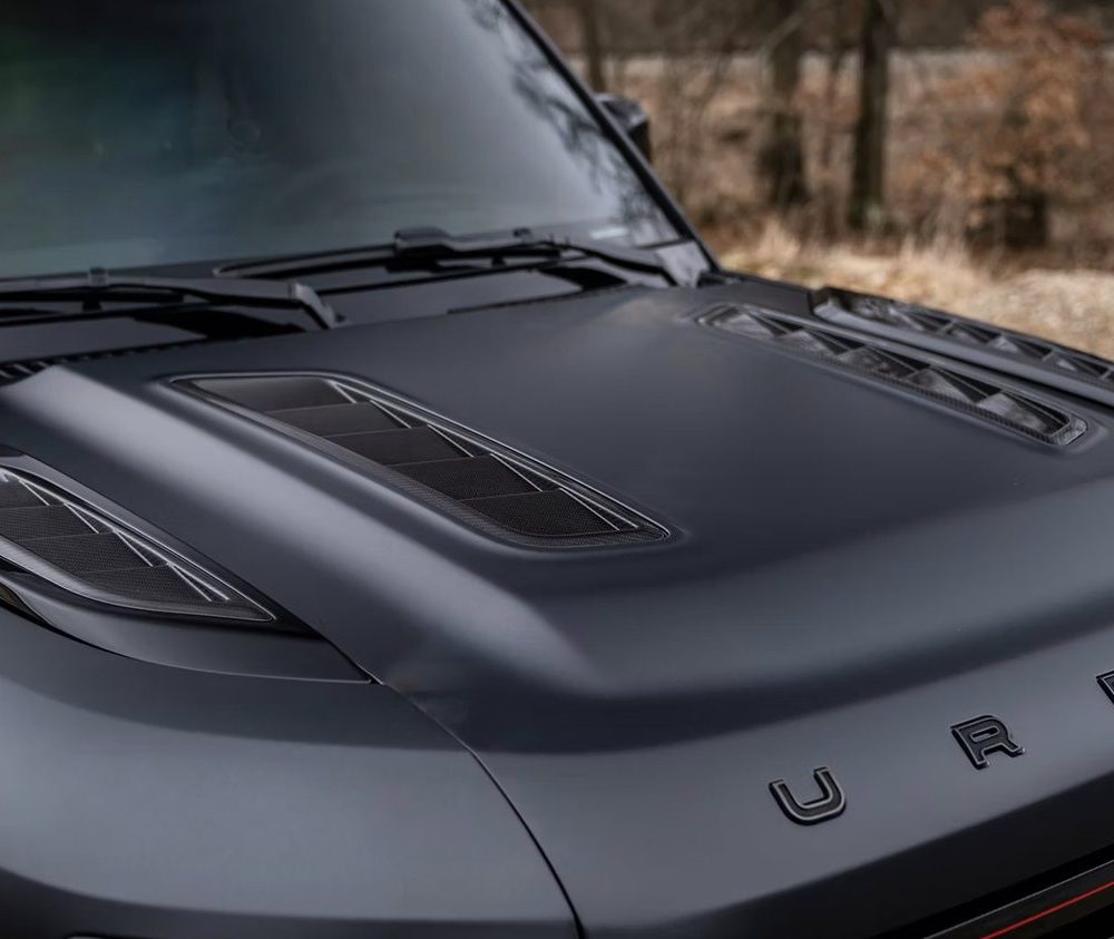 The Urban Automotive XRS Limited Edition Carbon Vented Hood for the L663 Land Rover Defender 90, 110, and 130 (pre-facelift) combines style and performance. Made from high-quality carbon fiber, it features functional vents to improve engine bay airflow and a sleek exposed carbon fiber finish, adding a unique motorsport-inspired look while enhancing vehicle performance.