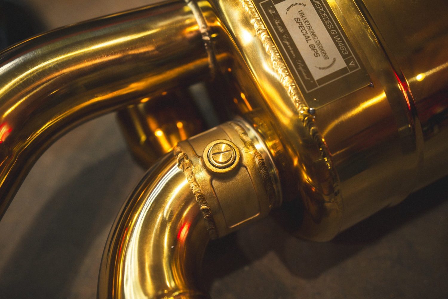 Valvetronic Designs’ anodized-gold T304 stainless valved exhaust for the W463 G63 unleashes a brutal, commanding soundtrack with refined control