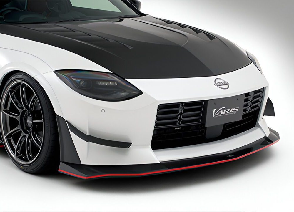 The Varis ARISING-1 Carbon+ Front Spoiler with Turbulator for the RZ34 Nissan Z is engineered to significantly improve downforce, enhancing your vehicle’s stability and performance at high speeds. With a design focused on premium fitment, this front spoiler seamlessly integrates with the Nissan Z’s aggressive lines. The CARBON+ construction is both lightweight and highly rigid, featuring a carbon vacuum molding on the surface that gives it the sleek, high-end appearance of dry carbon. This combination of advanced materials and cutting-edge design makes the Varis ARISING-1 Front Spoiler an essential upgrade for those seeking to elevate both the aesthetics and performance of their Nissan Z.