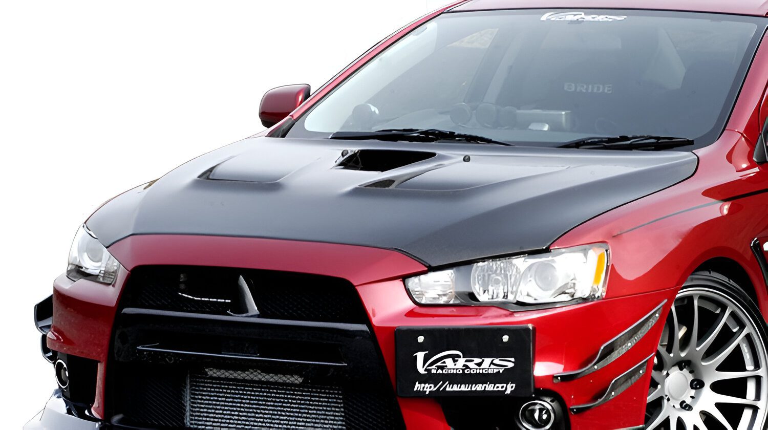 The Varis Cooling Bonnet Ver.1 for the Mitsubishi Evolution X combines functionality with premium construction to enhance your vehicle’s performance and aesthetics. Featuring large heat extraction vents, this bonnet is designed to efficiently remove excess engine heat, thereby improving thermal management and overall engine performance. It is available in a variety of high-quality materials, including fiberglass-reinforced plastic (FRP), carbon (half-carbon), and Varis Semi-Dry Carbon (VSDC), each offering a balance of durability and weight reduction. Whether you’re looking to boost your car’s performance or its curb appeal, this cooling bonnet provides a perfect blend of style and efficiency.