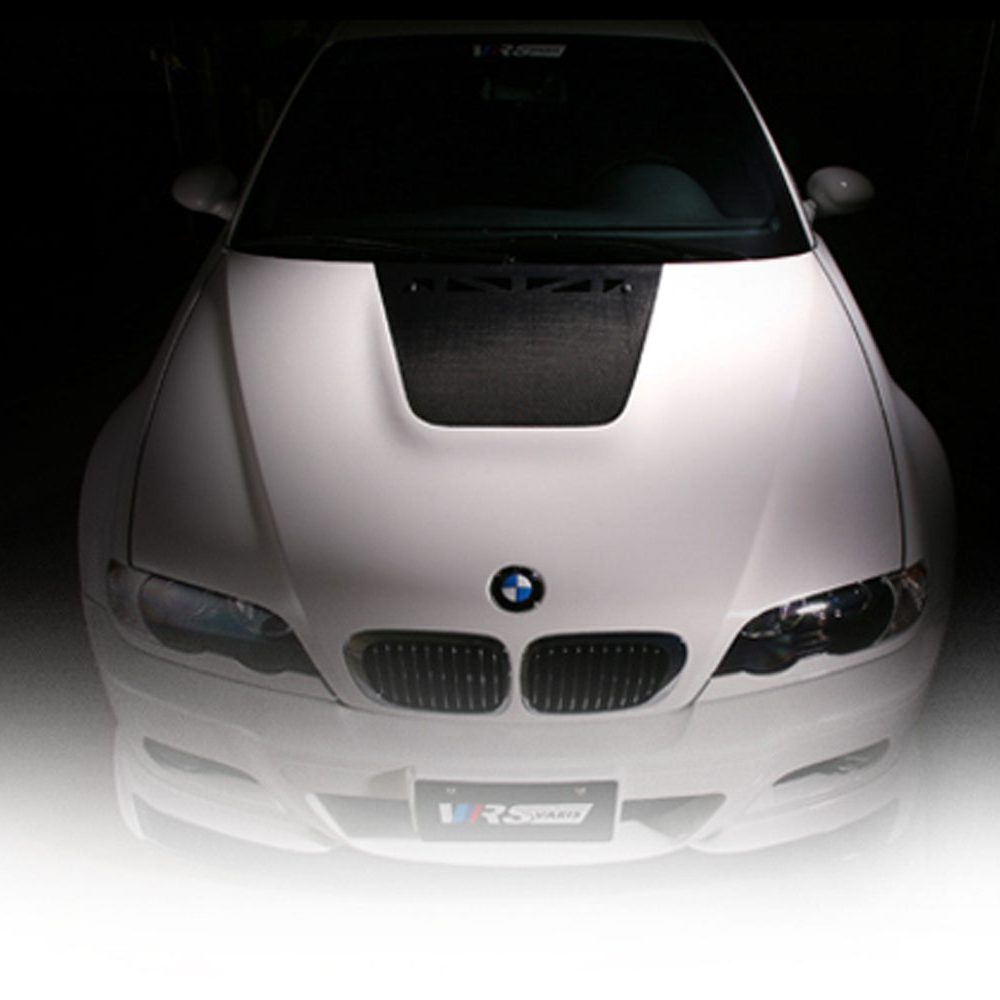 For the BMW E46 M3 coupe or CSL, the light weight bonnet can come in carbon. Designed and manufactured by VRS, a company by Varis, the carbon light weight cooling bonnet weighs only 8.5kgs, as opposed to the 12.0kg stock hood. VBB-4602