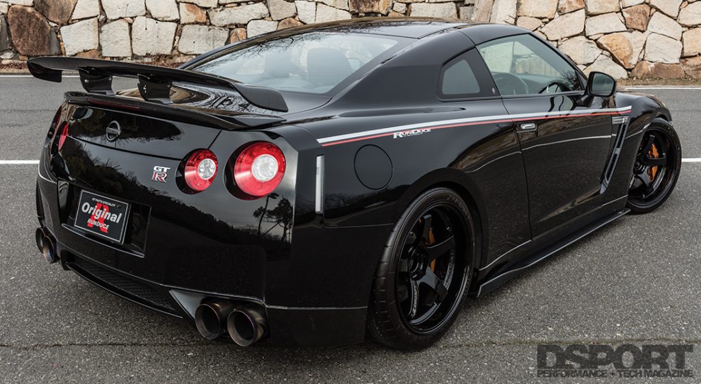 To round out the aesthetics of the GT-R, Original Runduce collaborated with Varis to complement the R35’s bodylines. Keeping with the streetcar focus, the selection of carbon-fiber pieces adds just enough flair to the GT-R without looking like a time attack car that forgot to go back to the track.