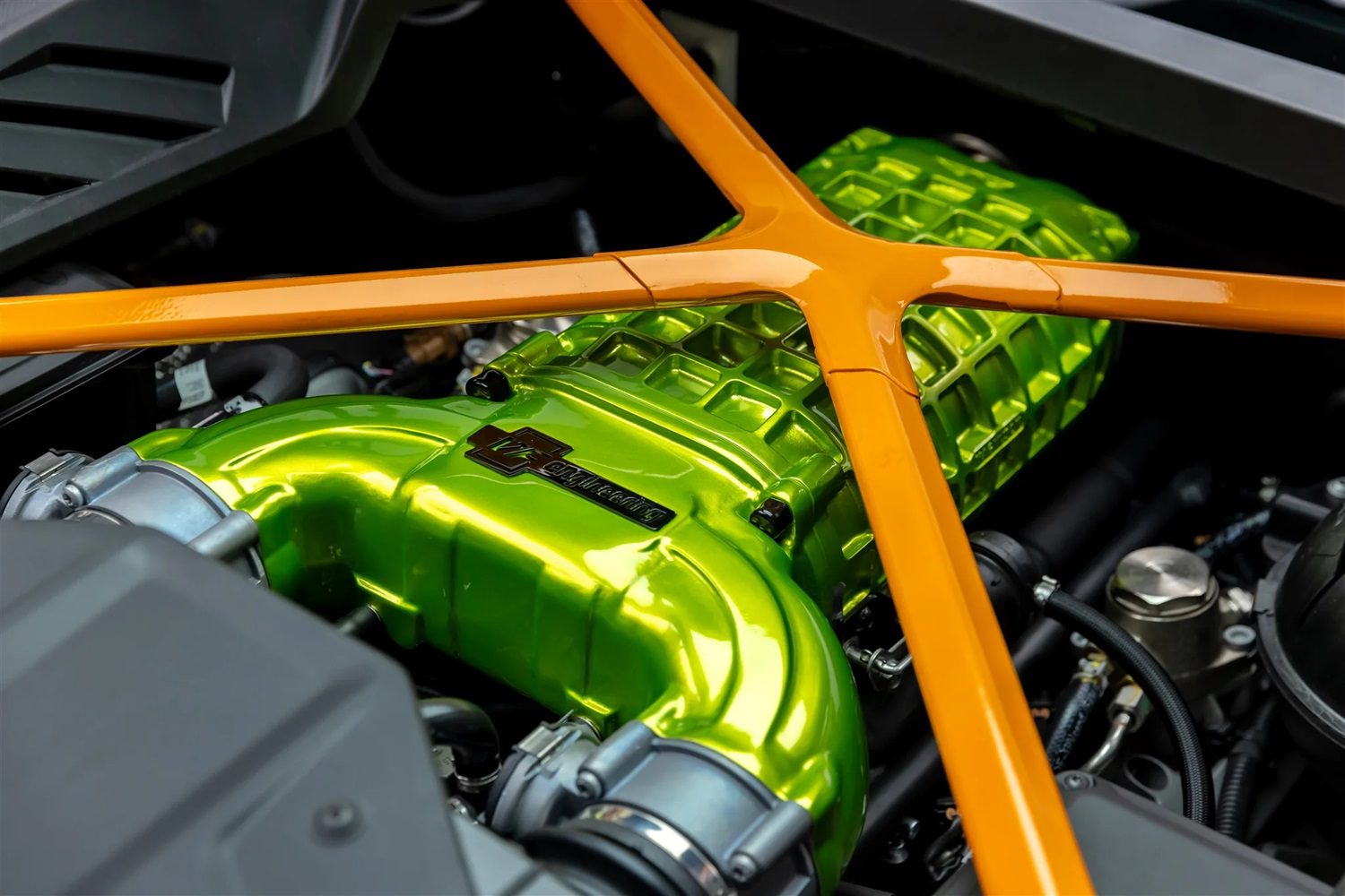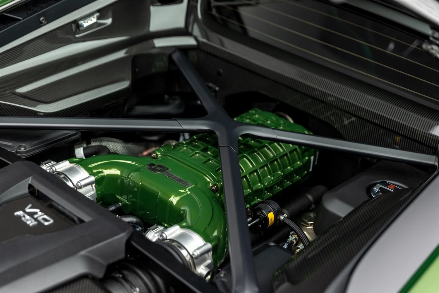 VF Engineering enhances the performance of the 2016+ Audi R8 with the VF800 Supercharger System, a meticulously engineered upgrade that delivers substantial increases in horsepower and torque. Designed to transform the R8 into a powerhouse for both canyon drives and track days, the VF800 features a 6th generation Magnuson TVS2300 Roots-style blower paired with a sophisticated air-to-water intercooler for optimal cooling efficiency. This ensures consistent performance, even under demanding conditions. The system’s plug-and-play design allows for a seamless installation process, enabling quick and efficient enhancement of the R8’s capabilities. Whether navigating winding roads or pushing limits on the track, the VF800 provides smooth throttle control and exceptional drivability. The system integrates seamlessly with the vehicle’s design, maintaining the aesthetics of the engine bay while delivering significant performance gains. Engineered with precision and innovation, the VF800 embodies VF Engineering’s commitment to quality, offering a thrilling and reliable driving experience.