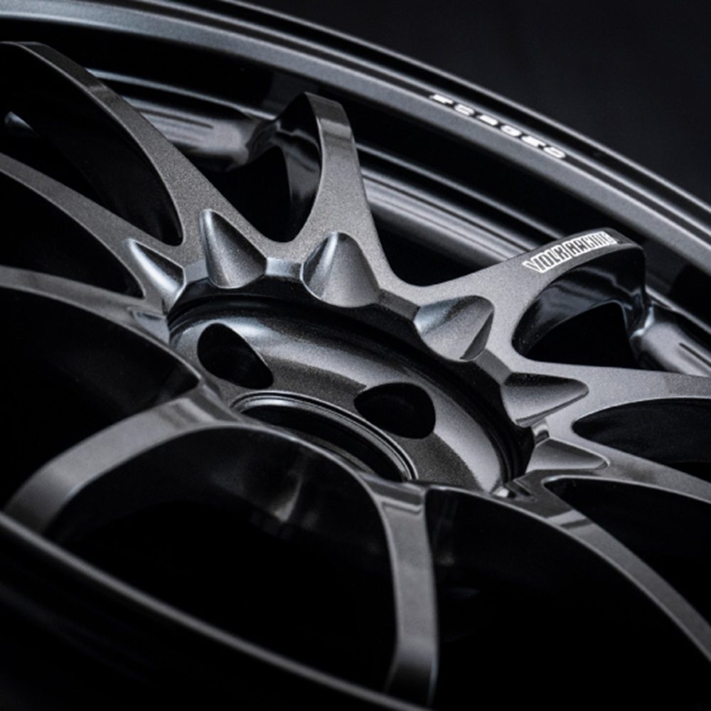 • The 10-spoke layout and spartan design of the center part remain unchanged from the previous model. Additionally, RAYS has redesigned the spoke and rim cross-sections to achieve both weight reduction and increased rigidity, with the wells treated in a wavy shape.