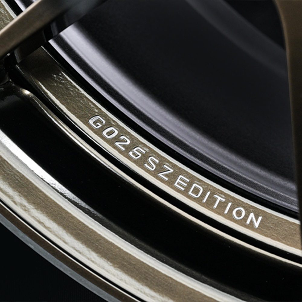 The G025 SZ Edition is defined by contrast — a finish that shifts from bright bronze to darkened black depending on light conditions. This visual transition sharpens the impact of its stretched spokes, lightweight voids, and deep concavity, channeling a refined motorsport character throughout its form.
