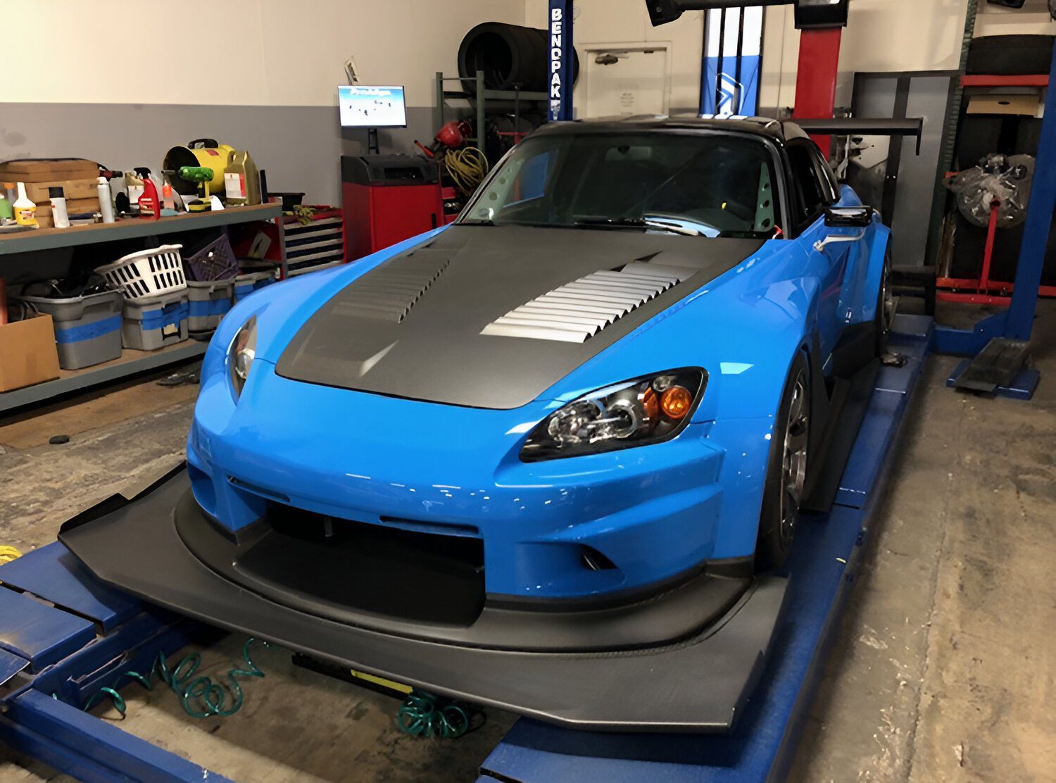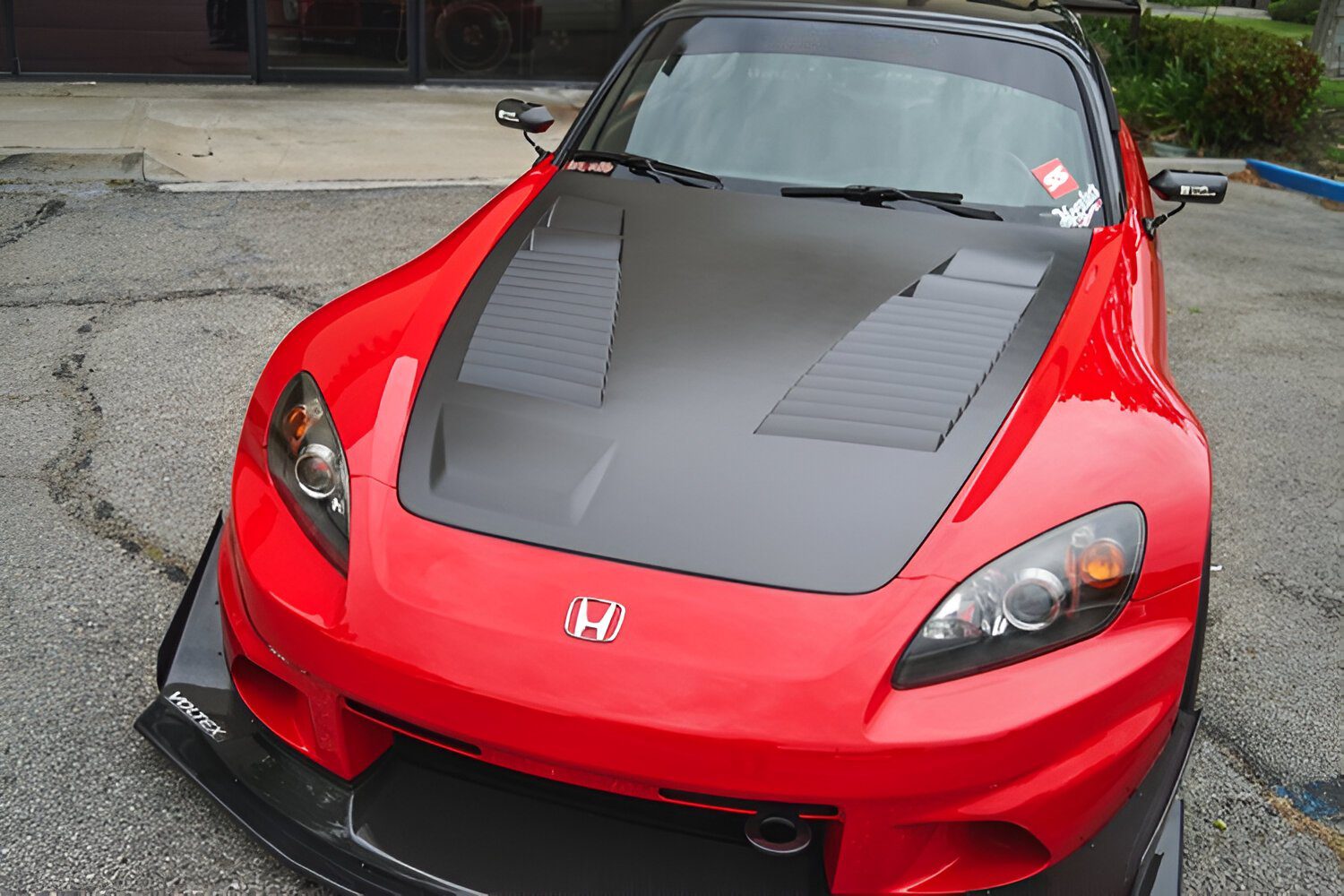 Voltex’s dry carbon fiber Hood for the Honda S2000 enhances aerodynamics, cooling, and performance with a lightweight, race-inspired design.
