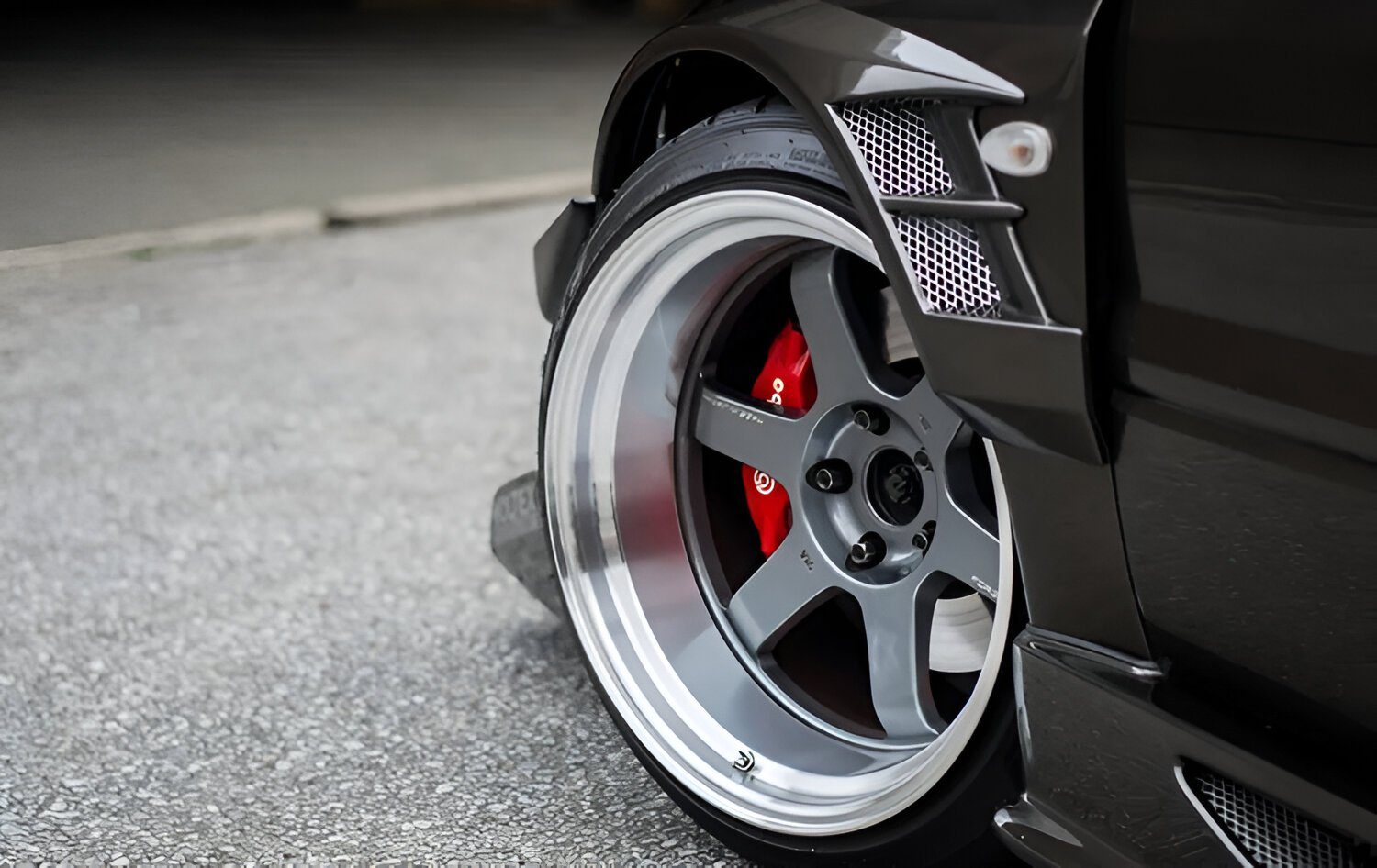 The Voltex Front Wide Fenders for the Mitsubishi Lancer Evolution VII / VIII / IX enhance aerodynamics and allow for a wider wheel setup, improving grip and cornering stability. Lightweight and durable, they provide an aggressive wide-body look with precise fitment for seamless integration with the factory bodywork.