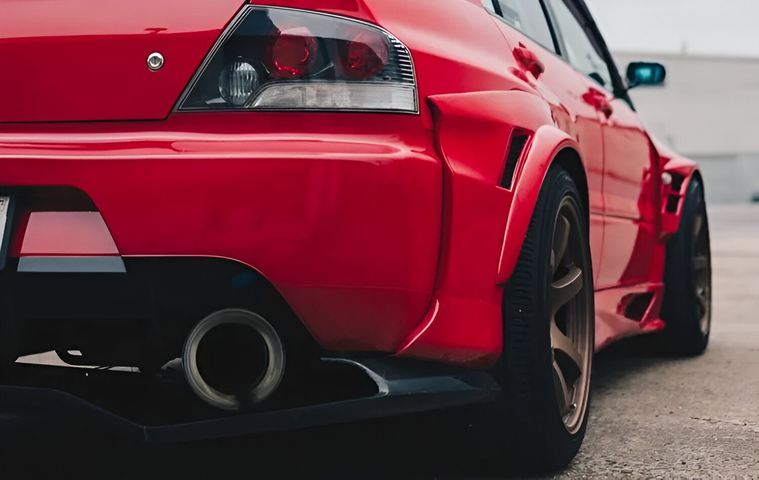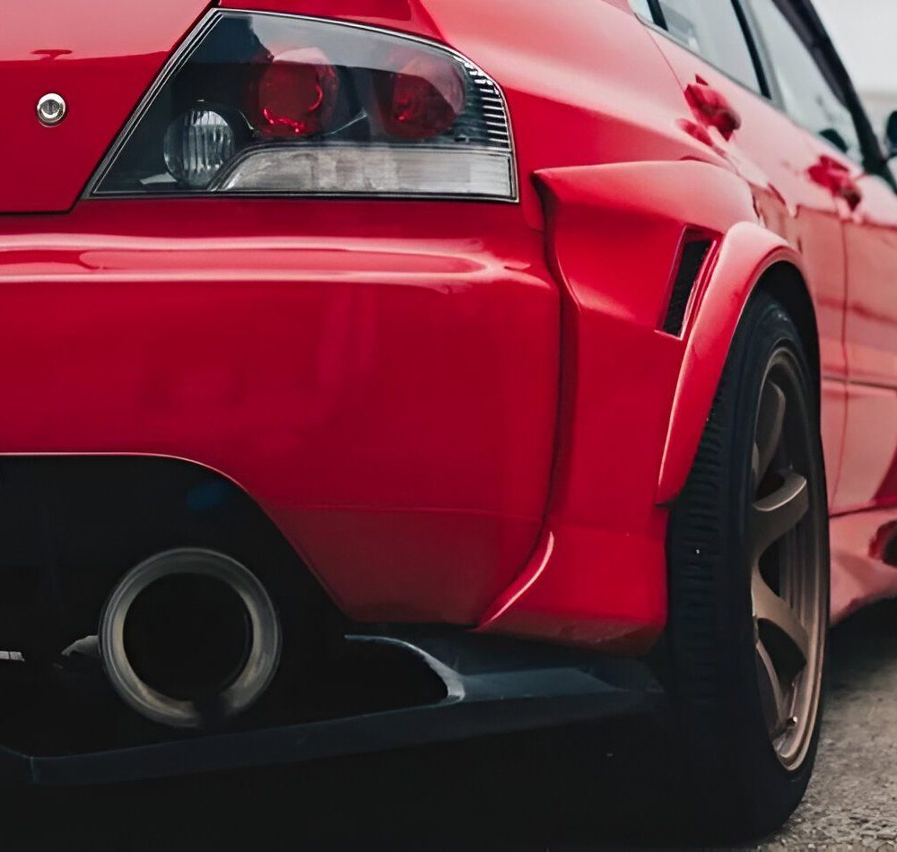 Voltex’s FRP Rear Wide Fenders for the Evo IX add 25mm per side for improved handling, wider wheels, and an aggressive, race-inspired look.