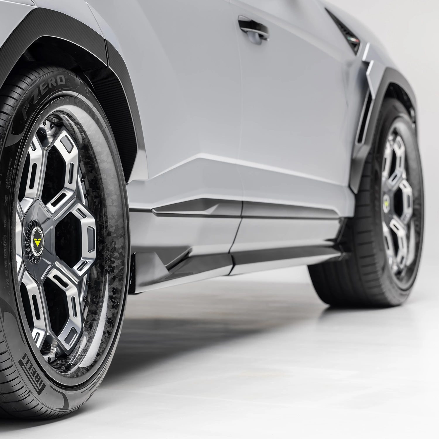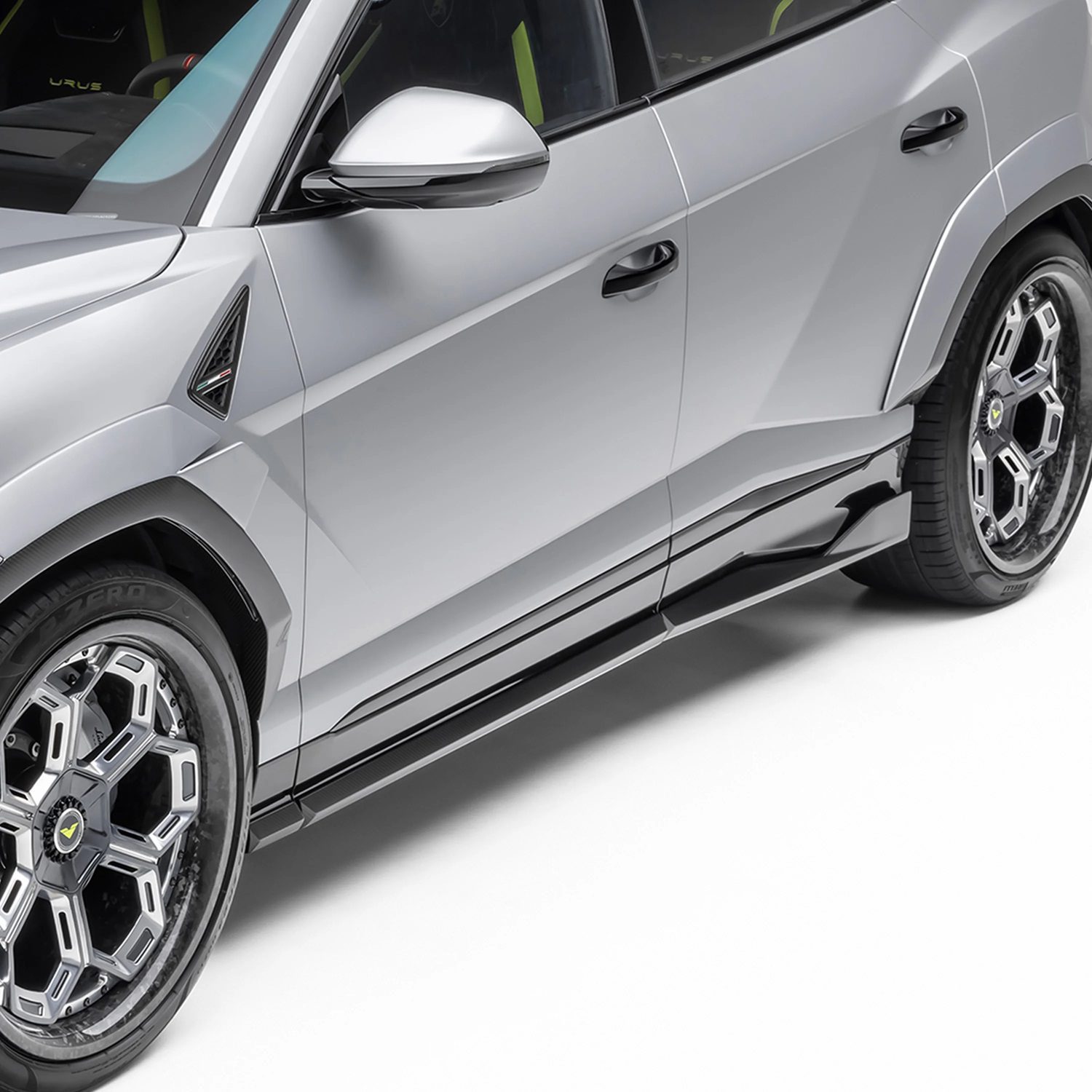 The Vorsteiner Carbon Edizione Aero Side Skirts for the Lamborghini Urus Performante elevate the SUV’s performance and aesthetic to new heights. These side skirts seamlessly blend lightweight durability with an aggressive, aerodynamic design. They enhance the vehicle’s stability at high speeds by reducing drag and improving airflow, contributing to a more efficient and thrilling driving experience. With a sleek, custom fit that complements the Urus Performante’s bold lines, the Carbon Edizione Aero Side Skirts are the perfect upgrade for discerning enthusiasts looking to amplify both style and performance.