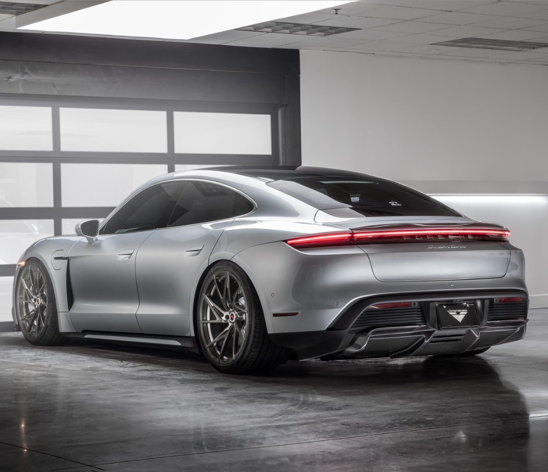 Vorsteiner’s Gunther Werks team have created a unique Front Spoiler, Rear Diffuser and Decklid Spoiler for the one-of-a kind EV, Porsche Taycan Turbo & Turbo S. These aftermarket parts showcase Vorsteiner’s signature glossy carbon fiber finish that embodies “There Is No Substitute”, which is an inspiring motto from each of Porsche’s contemporary sports cars creations. The combination of modern aesthetics, superior performance and reliable usability catalyzed with these additions makes for an outstanding experience overall!