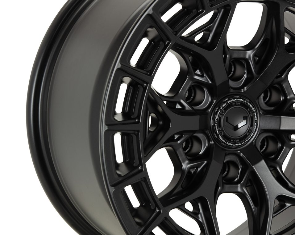 The Vossen HFX-1 in Satin Black combines bold styling with lightweight, durable Hybrid Forged construction, ideal for enhancing both the look and performance of trucks and SUVs.