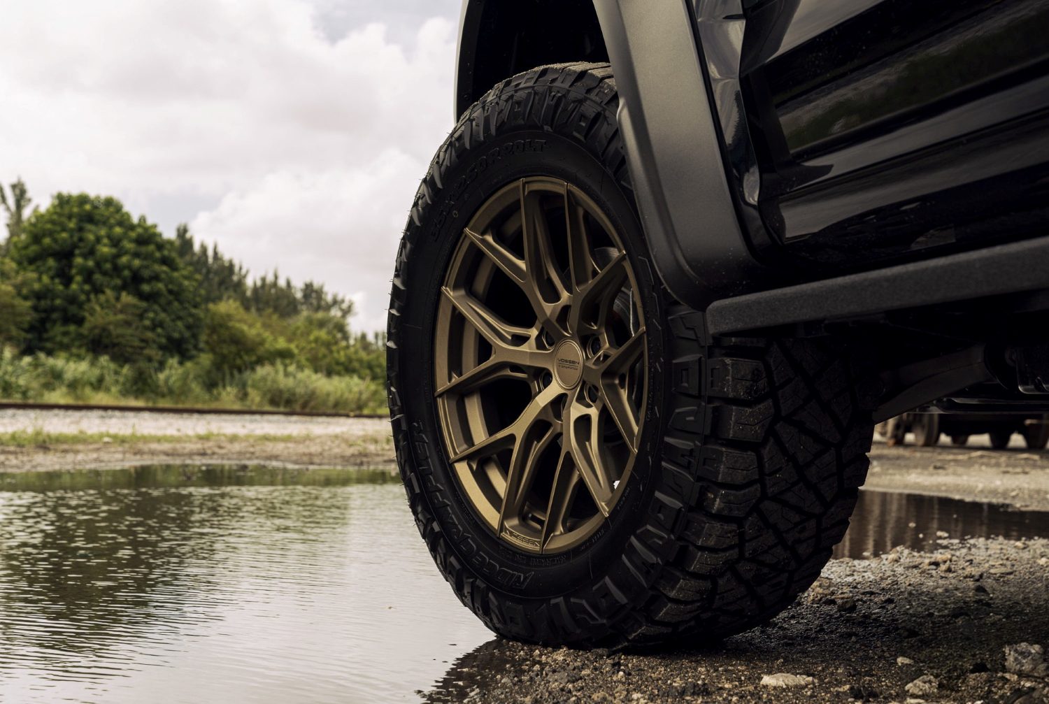 The Vossen HF6-4 in Terra Bronze is a striking six-lug wheel from the Hybrid Forged Series, designed for trucks and SUVs that demand both rugged performance and refined styling. Its bold deep concave Y-spoke design provides a powerful, aggressive stance, while Vossen’s advanced flow forming process ensures a lightweight yet durable structure that improves both handling and aesthetics. Finished in a distinctive Terra Bronze, it delivers a sophisticated edge that stands out on lifted or lowered builds alike. Offered in a wide range of sizes, the HF6-4 guarantees precise fitment and a commanding presence on any full-size platform.