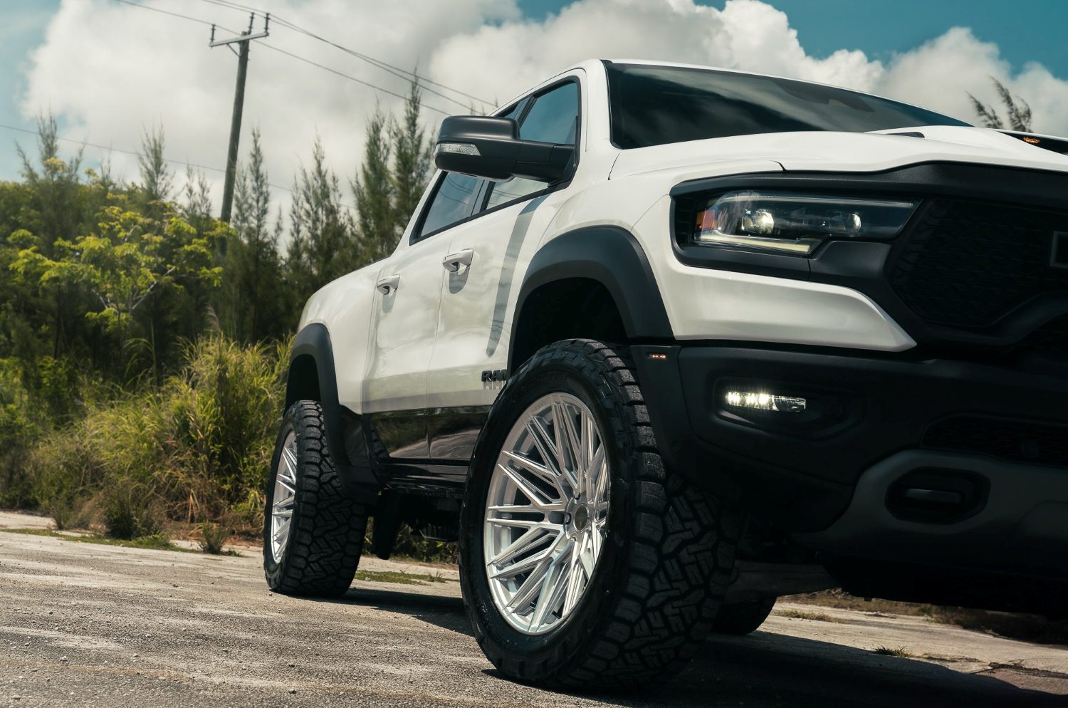 The Vossen HF6-5 in Silver Polished features a bold split-spoke design, lightweight Hybrid Forged construction, and durable flow-formed performance, offering a refined look and precise fit for 6-lug trucks and SUVs.