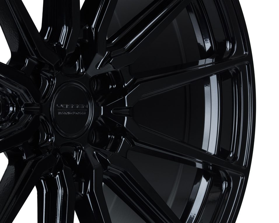 The Vossen HF6-1 in Gloss Black is a 6-lug Hybrid Forged wheel designed for trucks and SUVs, offering a bold split-spoke look, deep concavity, and lightweight strength through flow forming technology.