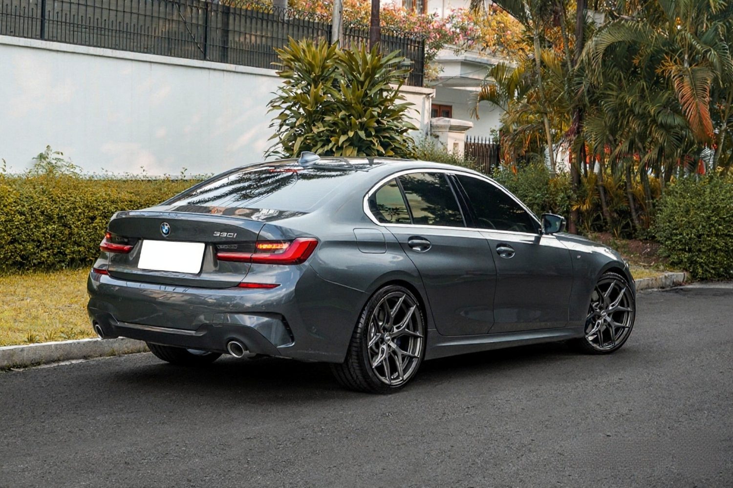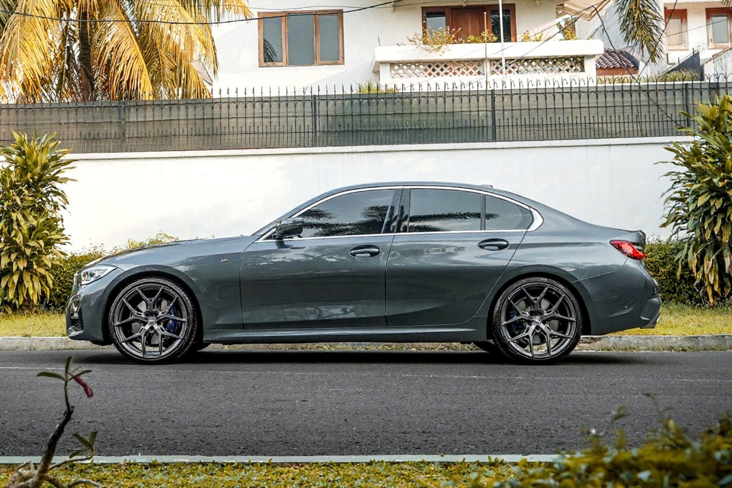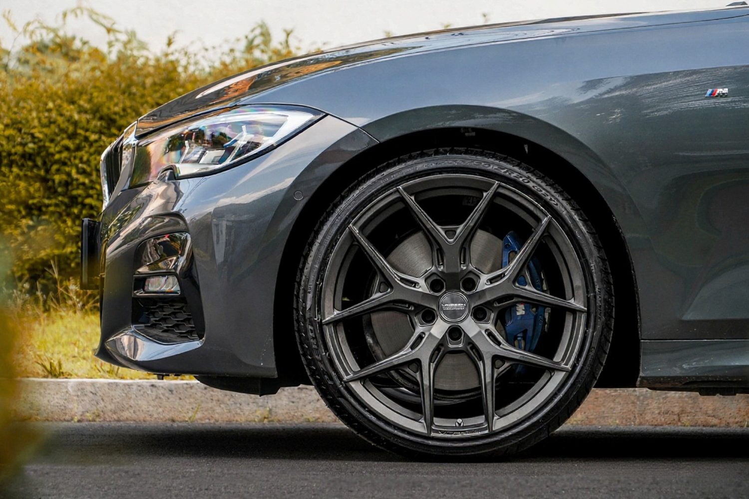 Matte Gunmetal HF-5: Hybrid Forged Y-spoke with a flow-formed barrel — lightweight, rigid, premium understated look.