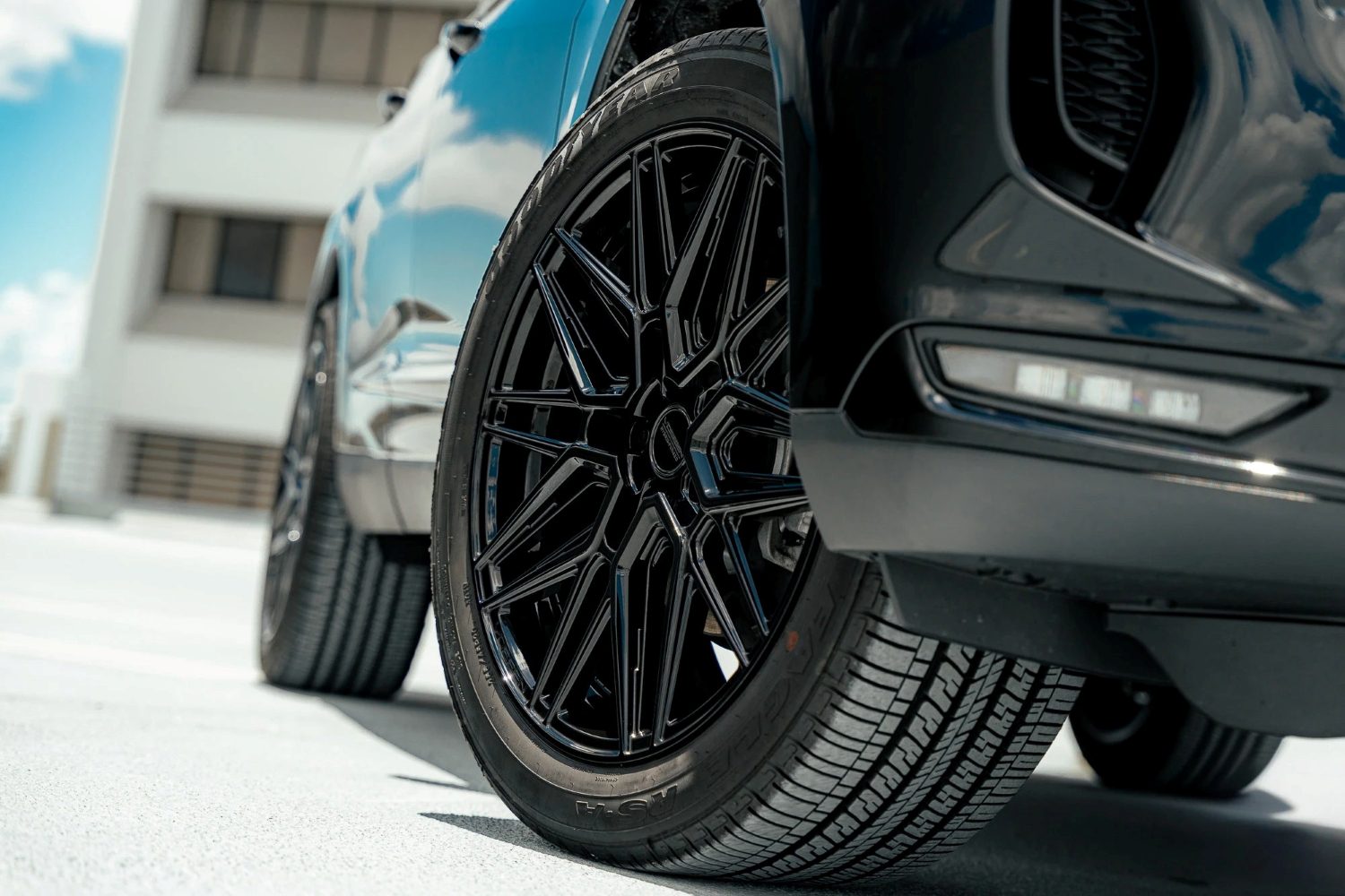 The Vossen HF-7 in Gloss Black features a bold split-spoke design, Hybrid Forged construction, and a deep concave profile, providing enhanced performance, durability, and a modern look for luxury cars and SUVs.