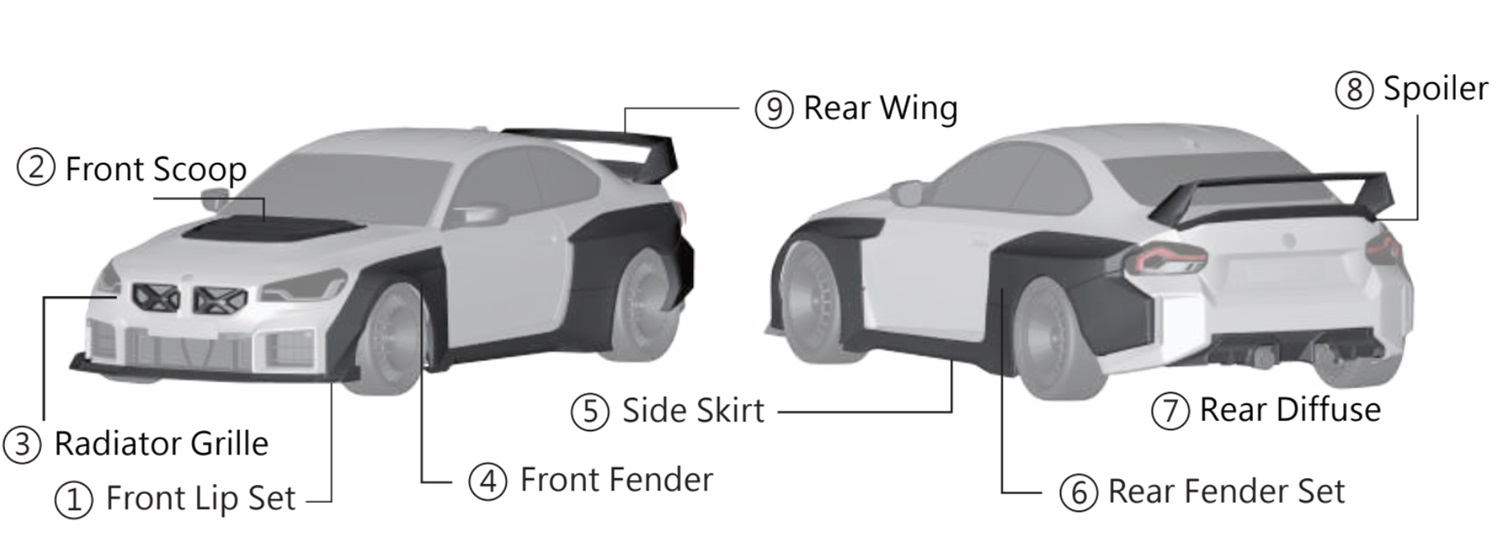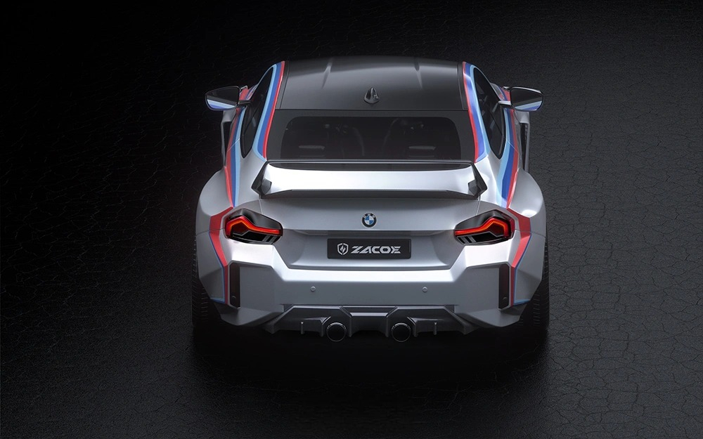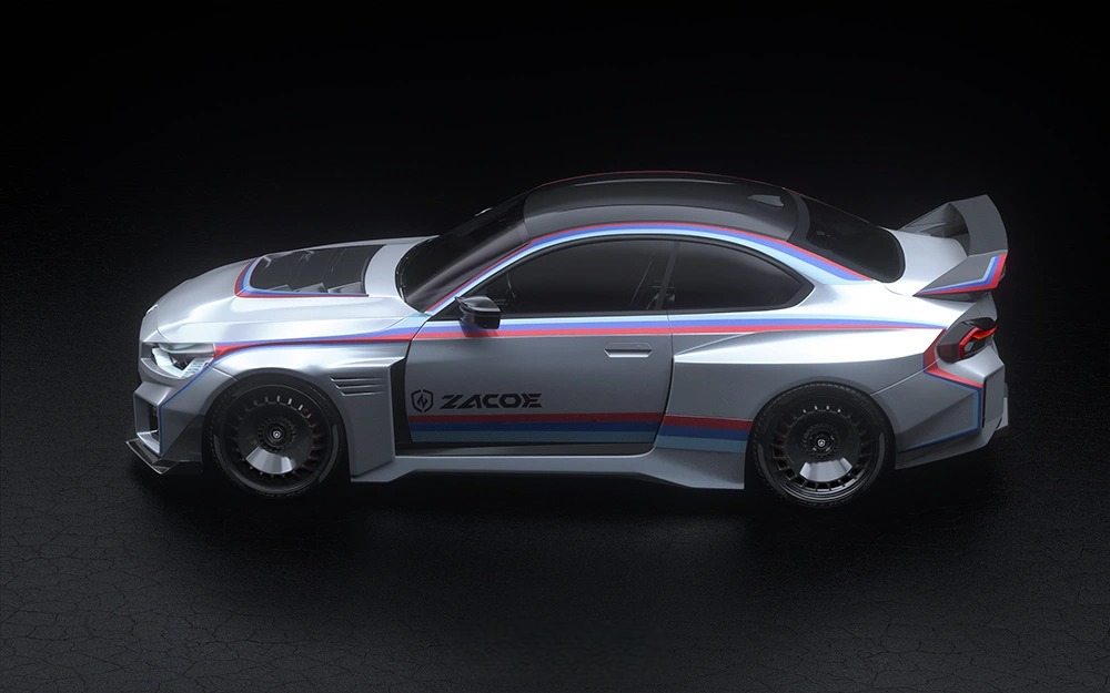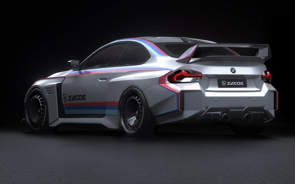 ZACOE Performance introduces the “Meister” widebody kit for the BMW G87 M2, drawing inspiration from the iconic BMW E30 M3 EVO DTM race car. This design masterfully combines the sharp, angular aesthetics of the 1980s and the integrated widebody styles of the 1990s with modern aerodynamic enhancements. Paying tribute to a golden era of motorsport, the kit features sleek “Coke bottle” curves and prominent fenders that create a fluid, aerodynamic silhouette, amplifying the M2’s aggressive stance. A redesigned front lip and lightweight carbon fiber hood deliver a bold, striking front profile, while the substantial two-layer rear wing enhances downforce and stability for a true racing-ready appearance. At the rear, a carbon fiber diffuser ensuring the M2 not only exudes track-ready style but also delivers dynamic, race-inspired performance.