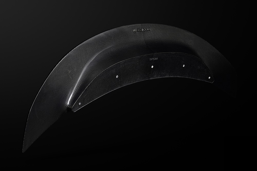 At the rear, ZACOE Performance introduces a striking wing that seamlessly blends form and function. Designed to deliver significant downforce, it enhances performance while preserving the stock spoiler’s functionality. Drawing inspiration from the classic Porsche ducktail wing, ZACOE reimagines this iconic feature with a modern twist — extending it across the trunk with elegantly curved-down sides. This innovative design accentuates the Taycan’s sleek fly-line profile, adding both visual drama and aerodynamic efficiency to the all-electric powerhouse.
