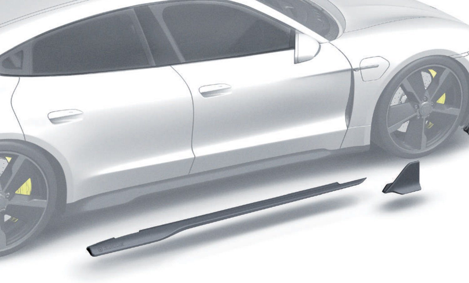 ZACOE Performance elevates the Porsche Taycan’s sporty profile with meticulously crafted carbon fiber side skirts that seamlessly integrate with the car’s sleek design. These side skirts visually lower the vehicle, enhancing its dynamic stance while creating a sense of greater connection to the road. Extending outward, they emphasize the car’s wide and athletic proportions, adding a commanding presence to its silhouette. The precision-engineered design not only complements the Taycan’s aerodynamic flow but also reinforces its aggressive, performance-oriented aesthetic, making it a true standout among electric vehicles.