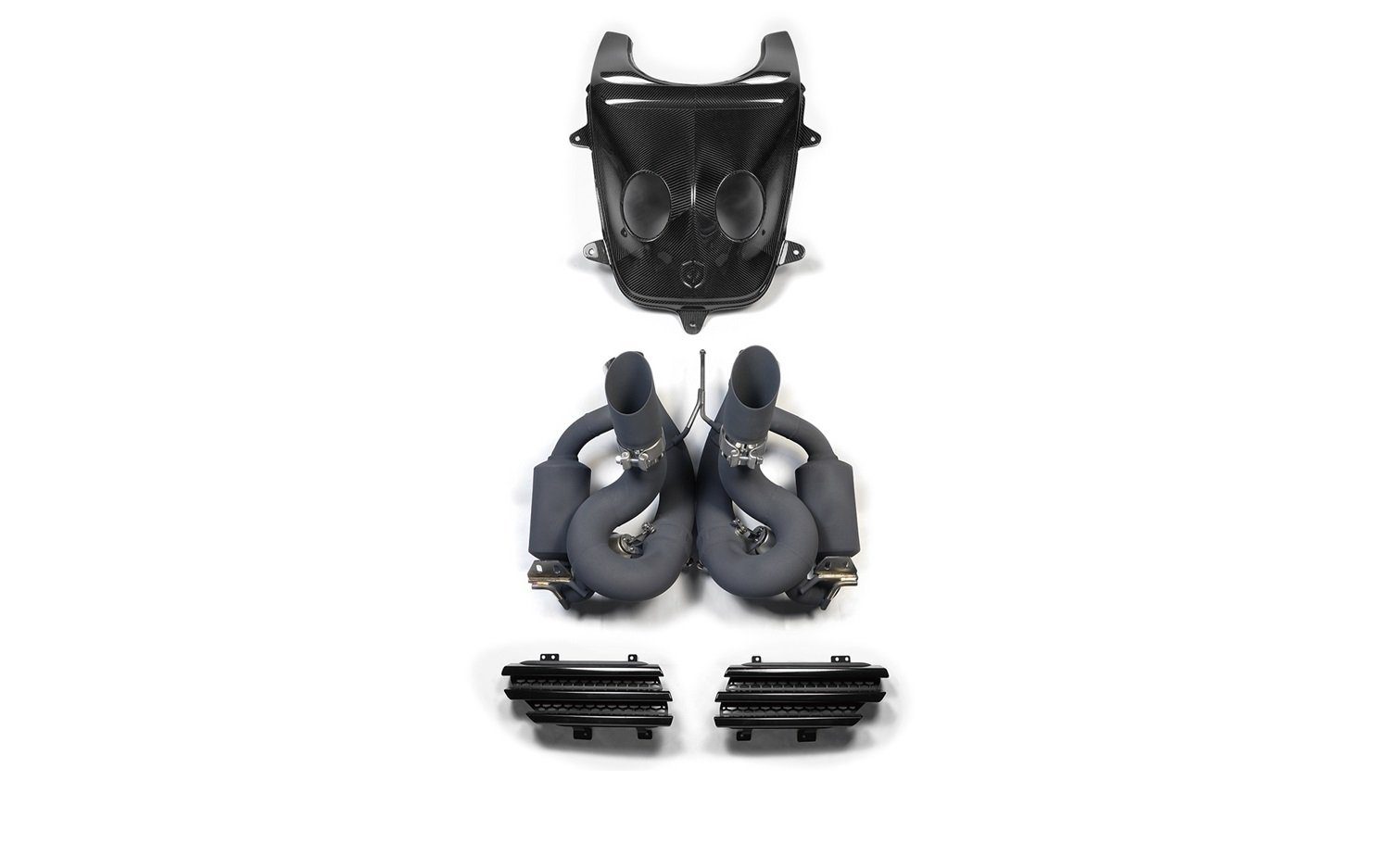 The McLaren 650S Volcano Conversion Kit by Fi Exhaust (Frequency Intelligent Exhaust) is a high-performance valvetronic system crafted from premium T304 stainless steel, designed as a direct bolt-on replacement. This advanced system enhances torque and delivers a thrilling exhaust note, with an estimated horsepower increase of 5-10% in a full race setup featuring a valvetronic catback and ultra-high-flow downpipe. It includes a ceramic-coated valvetronic muffler, ceramic dual silver exhaust tips, a standard remote control system module, a carbon fiber exhaust cover, a carbon fiber deck lid, and carbon fiber rear grilles. With the valves closed, exhaust gases pass through the muffler for a quieter, refined tone, while open valves unleash a bold, dynamic sound. Mode switching, based on your McLaren’s configuration, utilizes either the factory exhaust/sport button or drive modes. Engineered with innovative muffler internals, this system ensures an exceptional driving experience.